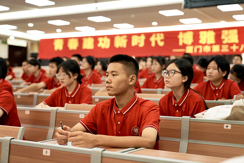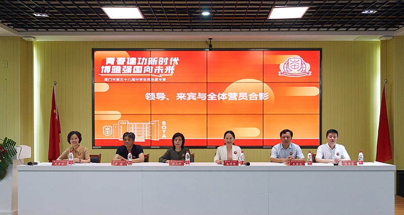 7月13日上午,由市委宣传部、市委文明办、市委教育工委主办,市教育科学研究院协办的第三十八届中学生政治夏令营在厦门第六中学开营。市委教育工委副书记、本届夏令营教导员施琦婷,市委文明办副主任、本届夏令营营长梁玉珍,市委宣传部、市委文明办、市委教育工委相关处室负责人、厦门第六中学校领导、教师以及全市53所学校的81名中学生夏令营员参加了开营式。