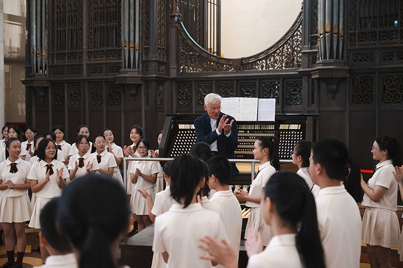 厦门六中合唱团与鼓浪屿签约管风琴大师联合演出。(本报记者 林铭鸿 摄)