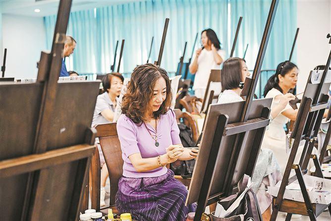 市民在老年大学学习西洋画。(本报记者 林铭鸿 摄)