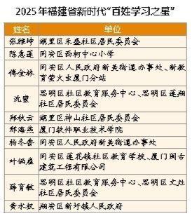今年,厦门获得国家级、省级新时代“百姓学习之星”和“终身学习品牌项目”的有: