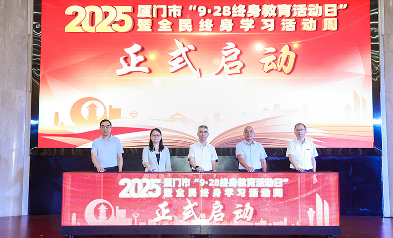 9月28日上午,由厦门市教育局主办,集美区教育局、厦门城市职业学院(厦门开放大学)承办的2025年厦门市“9·28终身教育活动日”暨全民终身学习活动周在集美区启动。厦门市教育局副局长洪军、市总工会副主席刘义平、集美区副区长黄灵敏,市委宣传部、老干部局、市人社局、市老年大学等相关单位,各区教育局、相关院校、各街道及社区教育工作者、社区居民代表参加活动。