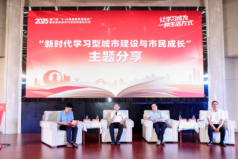 洪军表示,终身教育是建设学习型社会、学习型大国的重要支撑。厦门始终坚持“教育先行”,以建设高水平学习型城市为目标,持续探索终身教育创新发展路径。他强调,未来要重点在三个方面实现突破:一是构建协同推进“新格局”,完善工作机制与政策体系,主动将终身教育深度嵌入城市发展布局,为城市高质量发展提供人力支撑与智力支持。二是提升资源供给“新水平”,以数字技术赋能平台建设,促进优质资源开放共享,做强“书香鹭岛”“求学圆梦”等品牌,精准服务全龄学习需求。三是培育全民学习“新生态”,依托活动节点讲好学习故事,推进学习型组织与社区建设,让厦门不仅成为高素质的创新创业之城,也成为充盈书香、彰显品格的幸福学习之城。