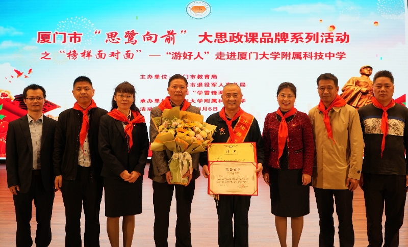 红色基因薪火传,雷锋精神永赓续。第63个全国学雷锋纪念日到来之际,由厦门市教育局、厦门市退役军人事务局、全国“学雷锋两会”主办的厦门市“思鹭向前”大思政课品牌之“榜样面对面”活动在厦门大学附属科技中学翔安校区举办。“全国模范退役军人”、“中国好人榜”好人、全国学雷锋突出贡献奖、厦门市思政课特聘教师、“活雷锋”游文晃老师走进学校传播雷锋精神。市教育局、市退役军人事务局相关同志,以及厦门大学附属科技中学相关负责人出席活动。